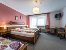 Large, comfortable house Bayerisch Häusl, 3 storeys, built in 1960, renovated in 2000. On a slope. Private: table tennis. In the house: WiFi, storage room for bicycles, central heating system. Parking (for 14 cars), communal covered parking. Nearby attractions: Cross Country Trail 150 m, Železná Ruda 4 km, Bikepark Špičák (CZ) 6 km, Lipno Stausee (CZ) 100 km. Well-known ski regions can easily be reached: Großer Arber 7 km. Hiking paths: Großer Arber 7 km. The house is a former guest house with a large lounge, gastro kitchen, beer tap (€ 50), cold room, underground garage and large, partially covered terrace.