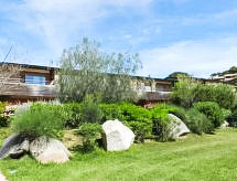 Santa Giulia 8 km from Porto Vecchio: Beautiful residence Cala Sultana. On the outskirts, 8 km from the centre of Porto-Vecchio, in a quiet position, 250 m from the sea, 250 m from the beach, direct access to the beach, in the countryside. For shared use: park 5 ha (fenced), swimming pool heated (24 x 7 m, depth 60 - 170 cm, seasonal availability: 15.Apr. - 01.Nov.). Outdoor shower, pool maintenance by the owner/gardener. In the complex: parking at the house, public parking. Shop 8 km, grocery 200 m, supermarket 9 km, restaurant 600 m, bakery 4 km, bus stop 2.3 km, sandy beach Santa Giulia 200 m. Sports harbour 8 km, marina 250 m, golf course (9 hole) 2 km, tennis 7 km, riding stable 6 km. Nearby attractions: Figari 22 km, Bonifacio 26 km, Solenzara 54 km, Iles Lavezzi. Hiking paths: Aiguilles de Bavella, Réserve Naturelle de Bonifacio. Please note: car recommended. Suitable for families. Airfield close by 25 km from the property.