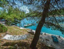 RIBNICA 15 km from Novigrad: Beautiful apartment block Mara. 8 km from the centre of Obrovac, in a quiet, sunny, elevated position, 10 m from the sea, 10 m from the beach. In the house: internet access. Parking at the house on the premises. Shop 400 m, restaurant 200 m, bus stop 26 km, pebble beach 20 m, rocky beach 10 m. The owner does not accept any youth groups. Please note: Additional accommodations can be booked.