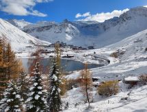Tignes Val Claret: Residence Les Tommeuses - excellent location: central but quiet, right by the Tignes and Val d'Isère slopes, ski in ski out. Residence Les Tommeuses (Val Claret), 7 storeys. 20 m from the skiing area. In the complex: lift, storage room for skis, central heating system. Public car park at 700 m, extra. Grocery, restaurant 50 m, bus stop 600 m, indoor swimming pool 2 km. Sports centre 2 km, skisport facilities 100 m, slopes 20 m, ski rental 50 m, ski school 200 m, children's ski school 20 m, sled run 200 m. Nearby attractions: LAGON CENTRE AQUATIQUE 2 km, TIGNES ESPACE CENTRE SPORTIF 2 km, GOLF DE TIGNES 2 km, CINEMA 800 m. Well-known ski regions can easily be reached: TIGNES VAL D'ISERE 20 m. Well-known lakes can easily be reached: LAC DE TIGNES 2 km. Hiking paths: PARC DE LA VANOISE 20 m. Please note: ski bus (free of charge). Additional accommodations can be booked.
